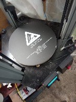 One of the biggest issues I have had with this printer is good adhesion to the heated bed,  which is an insulated 250w 230v heated bed, constructed from 15mm thick 'Tuffnel' with a borosilicate glass disk held with stainless steel clips,  the whole bed has three adjustable spring loaded anchor points to the base. This is the second glass disk I have used as the first one distorted as it came up to the working temperature of about 85degC, I did plan on having a fan blower mechanism to vent cool air directly under the glass disk for forced cooling ( but not done that yet ).  The heater element is attached to an earthed copper disk 3mm thick the same diameter as the glass as a heat spreader so that the bed is always at a uniform temperature across the surface.