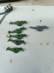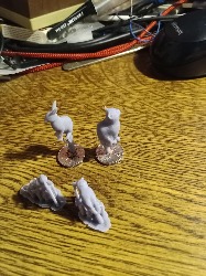 Here we start with the 3d printed models, they are sitting on UK 5p pieces, they are approximately 15mm tall,  from these rubber molds were constructed and this was used to create the wax copies, the resolution and the detail in the wax is really quite astounding.