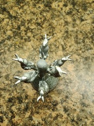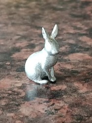 Here you can see the casting as it comes out of the plaster and here is one of the bunnies that has been cleaned up, the 'dimpled' pattern on the surface of the metal was due to the mold still being too hot for the metal when it was poured. ( the metal used is a zinc aluminium alloy ZL12 I believe ).