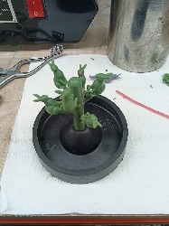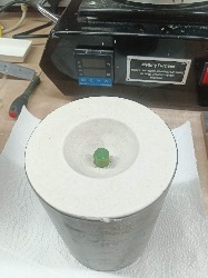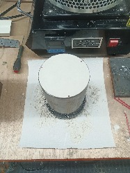 Here a number of the wax bunnies have been assembled into a wax tree and the flask has been filled with investment plaster.