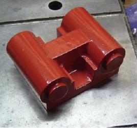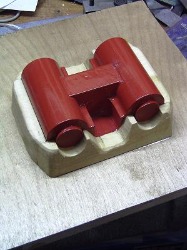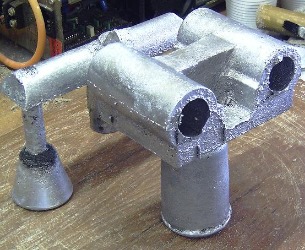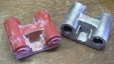 This was a more complex shape to cast and required a mount for the first half of the mold the second half of the mold was made by removing the pattern from the mount, placing it in the first half of mold and then ramming the second half.